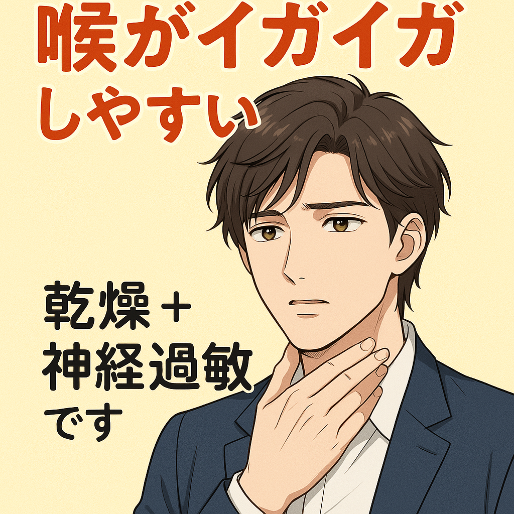 結果的に イガイガ・異物感・声がかすれる・頻繁な咳払い が起こりやすくなります。