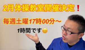 2月体操教室開催決定しました😊【くろちゃん鍼灸整体院】院長の黒柳です😊 2月4日、11日、18日、25日の四日間17:00〜1時間の『体操教室』【初心者編】を行います! 今回のテーマは【股関節】です😊 今まで動きにくい股 […]
