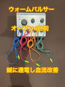 オープン4日前😊 鍼灸施術用のウォームパルサー😍 鍼に通電して筋肉を動かして血流を良くする治療法が出来る機械です😊 鍼灸施術は色々な方法がありますので痛みやシビレ、血流改善が主な目的です😊 痛み、シビレ、血流改善はまず原 […]