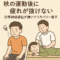 はじめに 秋になると地域の学校や幼稚園で運動会シーズンを迎えますね。お子さんの応援や準備、後片付けに加え、ご自身も競技や保護者競技に参加して体を動かす機会が増えます。その後「疲れが抜けない」「だるさが長引く」と感じる方も […]