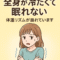 (くろちゃん鍼灸整体院) はじめに 「布団に入っているのに、手足が冷たくて全然眠れない…」「身体の芯まで冷たくて、寝つくまでに1時間以上かかる…」そんなお悩みを抱えながら来院される方が、冬だけでなく最近は季節を問わず増え […]