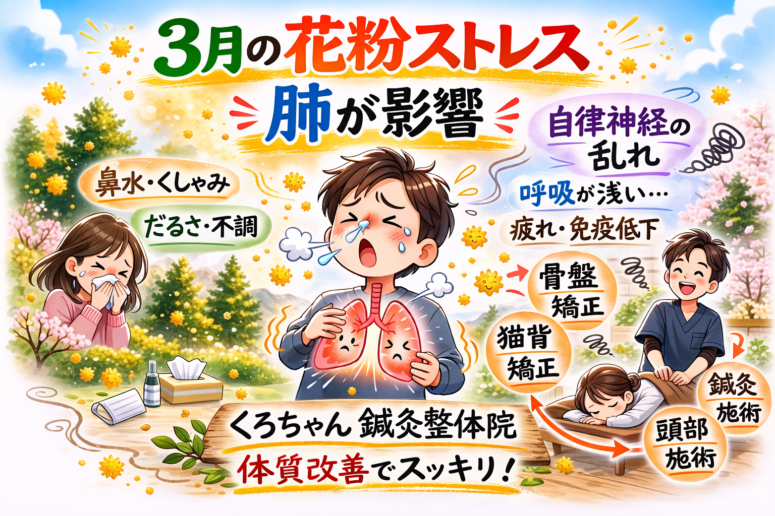 3月の花粉ストレスは「肺」が大きく関係すると考えます。