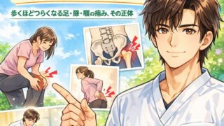 歩くと膝が不安になる原因は膝関節支持力低下かもしれません。小田原市・南足柄市・開成町・秦野市・中井町・大井松田町対応のくろちゃん鍼灸整体院が詳しく解説。