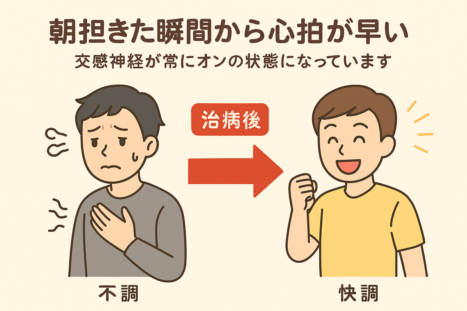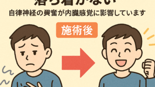朝から胸がざわざわして不安を感じる方へ。交感神経の過剰反応を整える骨盤矯正・猫背矯正・鍼灸・頭部施術で心身をリセット。小田原市・南足柄市・開成町・湯河原町・箱根町・熱海市対応【くろちゃん鍼灸整体院】
