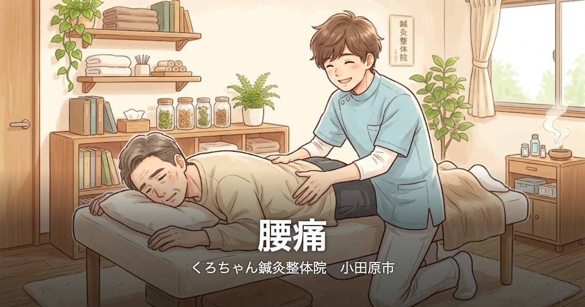 「腰痛は年だから仕方ない」と諦めていませんか?適切な施術とセルフケアで、腰痛は改善できます。小田原市のくろちゃん鍼灸整体院では、あなたの腰痛の根本原因を見極め、鍼灸整体による総合的なアプローチをご提供します。まずはLINEからお気軽にご相談ください。
